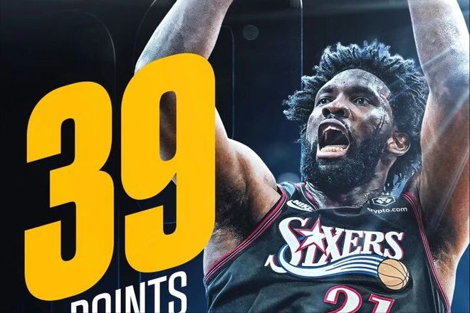 说回76人,今天他们115-105战胜了步行者,近10场比赛5胜5负。值得一提的是,这场比赛后场核心马克西生病缺席了这场比赛,或许也是因为这一点,才给了76人球迷一个惊喜。那就是他们的内线核心恩比德,似乎回来了?全场恩比德在32分钟的时间内,就23投12中,高效得到了39分9篮板3助攻1抢断。而且比赛打了三节,恩比德就得到了30+,刷新个人赛季得分纪录。今天比赛之前,恩比德本赛季的单场最高得分为29分,一方面是状态不好,另一方面,则是因为他本赛季也只打了10场比赛,而且每场比赛都有一定的时间限制。毕竟恩比德的伤病史,让76人不得不担心。