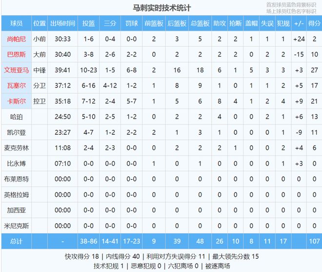 最后来看看本场数据,你觉得马刺本赛季能重返季后赛吗?