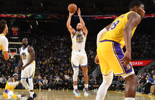 但库里在场时,那比赛就很复杂了:库里的进攻,以无球拉扯出空间等队友传球为主,队友的挡拆和跑位撕扯对手防线,让库里出手变得更加简单,这是事实对吧?那库里的得分,一定是团队配合的结果,不说全部,场均5.2记三分球,有3-4记是这么来的,包括库里和追梦格林的一些顺下挡拆。假设,如果库里可以像字母哥那样,拥有极强的自主进攻得分占比,根本不需要队友,场场30+,那勇士需要面对一个问题,就是库里在防守端,需要队友补漏,这也是为什么科尔经常让佩顿、穆迪和巴特勒同时在场的原因。