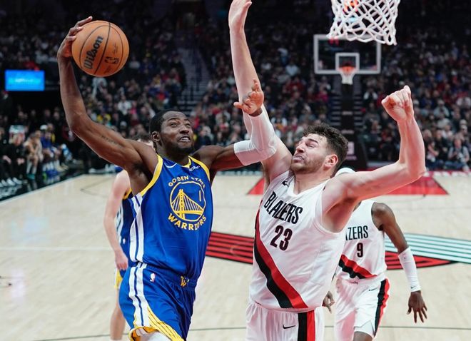 但有一支球队处境尴尬,就是勇士。勇士开赛29天来回飞13个城市,打了17场比赛,从赛程密集度到整体难度,都是地狱级别。勇士也从开局的4胜1负,到最近12战6负,慢慢被西部争冠热门甩开。这中间球队经历很多问题,比如连续爆冷输残阵步行者和雄鹿,都是托大,各种失误,领先也不认真打球;包括库里的重感冒和脚踝伤势,巴特勒也有过伤情。这么打下去,勇士没有竞争力。那怎么办?拿库明加开刀!名记马克斯泰因透露,勇士队内很多人支持库明加,认为他本赛季场均14分6.6篮板有进步,但预计库明加依旧要被交易。