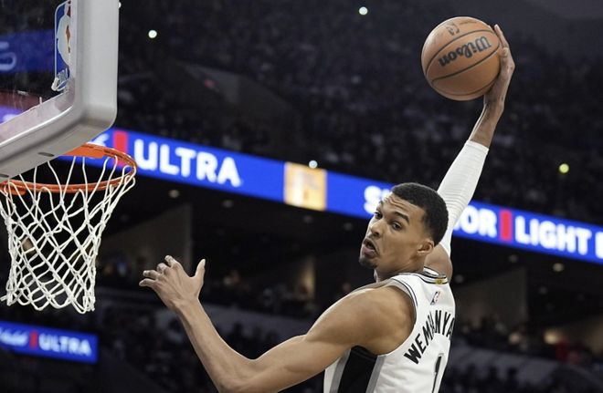 文班29+11+9封盖连场打爆状元!锡安隔扣法国高塔,马刺力克鹈鹕